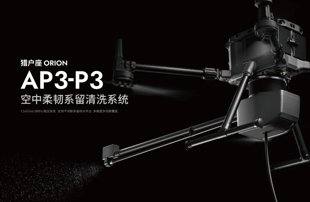 基于高压水枪和柔韧云台,AP3-P3 可实现多角度调节,能够全面覆盖玻璃顶的各个角落,实现高质量的清洁效果。此外,该系统不仅具备高效清洗能力,还采用了柔韧自适应平衡技术,配备激光实时测距模组,确保清洗过程中无人机的稳定性和安全性。系统的模块化设计和滑入式接口,则使得设备的安装部署极为快捷,能够在1分钟内完成,大大减少了对地铁站正常运营的影响。