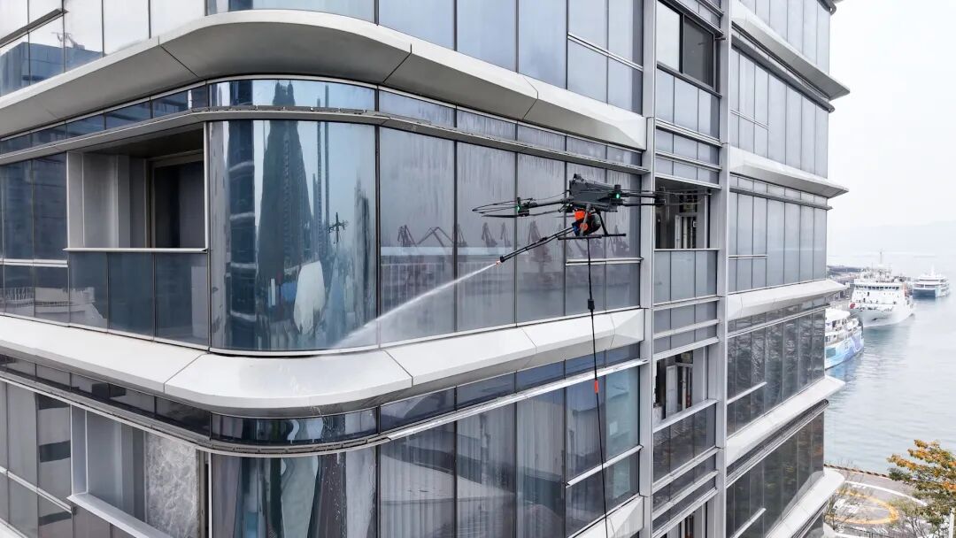 To address this, the Faronheat® team fullyleveraged the performance advantages of the AP3-P3 aerial cleaning robot,efficiently and with high quality completing the cleaning of **18,000 squaremeters of curtain walls within six days**. Empowered by **Pliabot® joints** and**tactile AI**, the AP3-P3 features intelligent active and passive adaptivebalancing capabilities. It can flexibly absorb accidental collisions,effectively resist airflow disturbances, and ensure high collision safety,thereby enabling **ultra-close proximity operations**. This fully unleashes thespraying pressure, effectively cleaning adhered contaminants. At the same time,the flexible joints allow multi-angle precise pneumatic control, ensuringthorough cleaning with no blind spots.